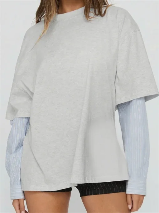 Women Long Sleeve T-shirt Lace Flower Trim Solid Color Ribbed Tee Tops Spring Fall Retro Y2K Aesthetic Shirts