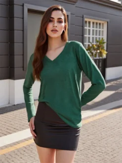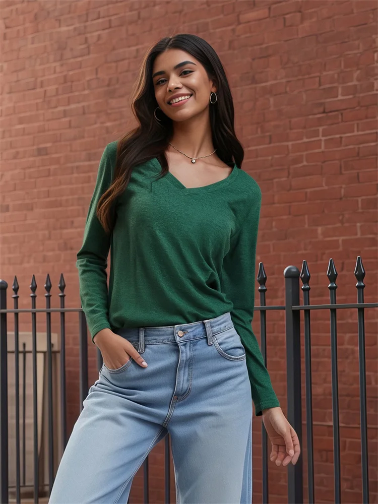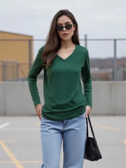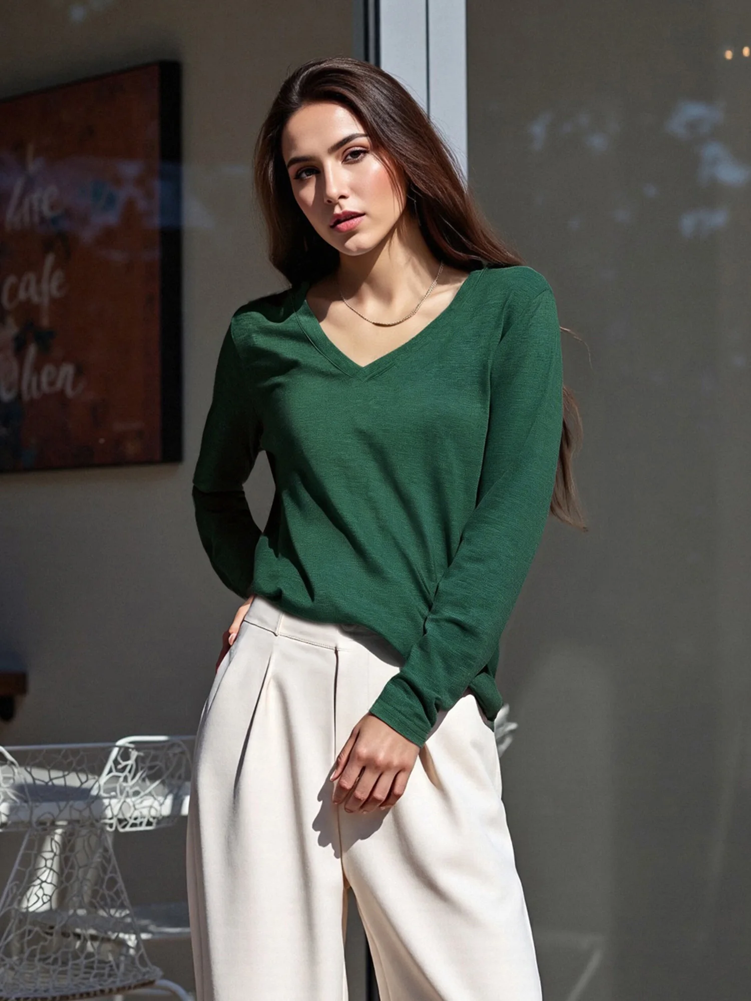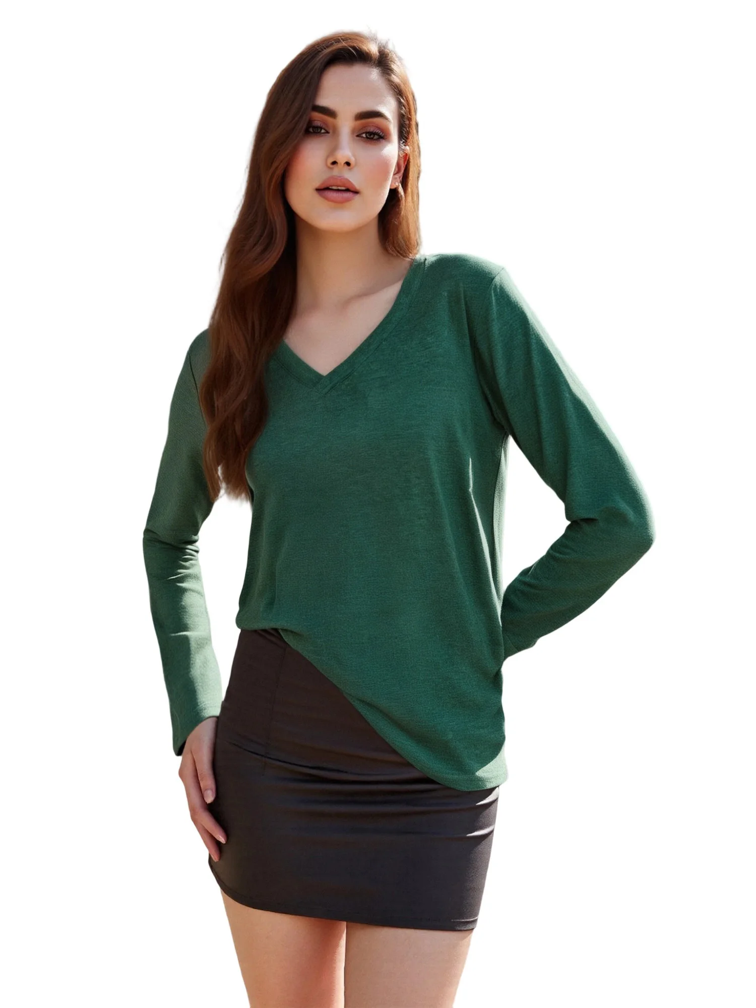 Classic solid color adds a touch of elegance; Long sleeves, V-neck, loose fit, casual style; Basic tops for women; Fashion shirts for women, makes you feel confident and beautiful