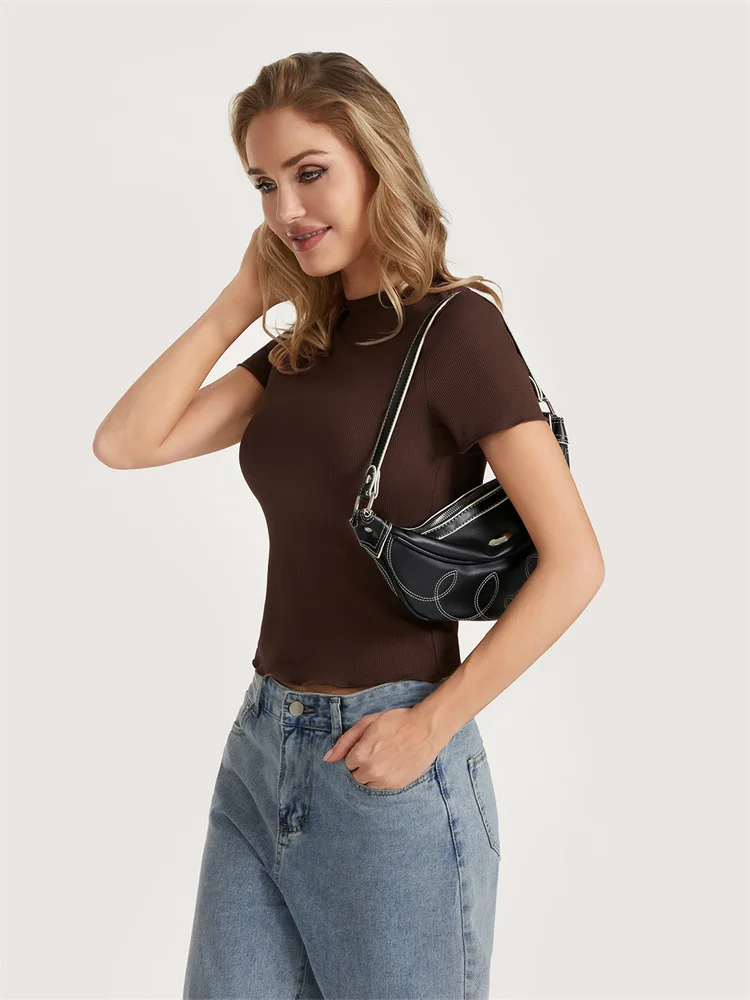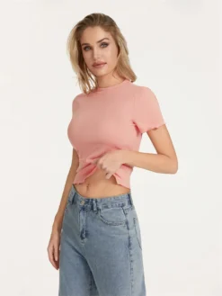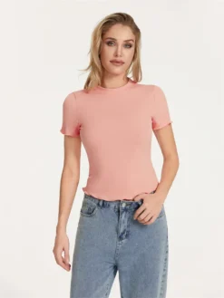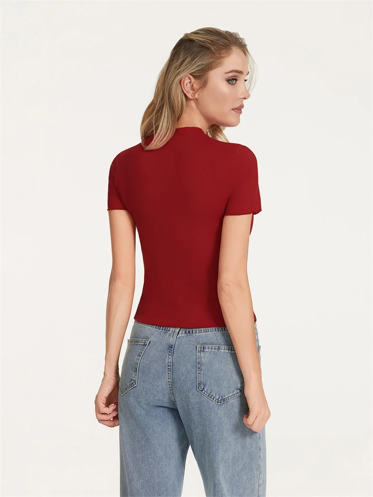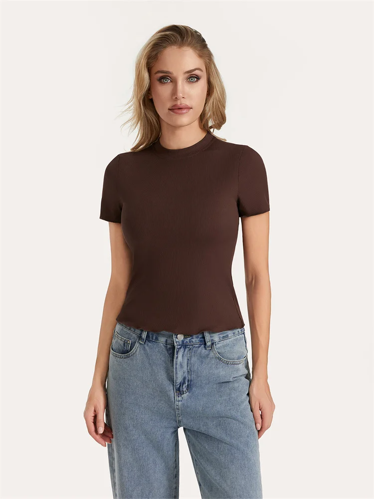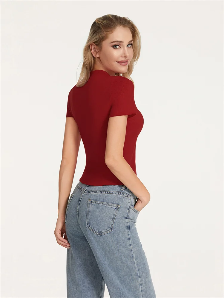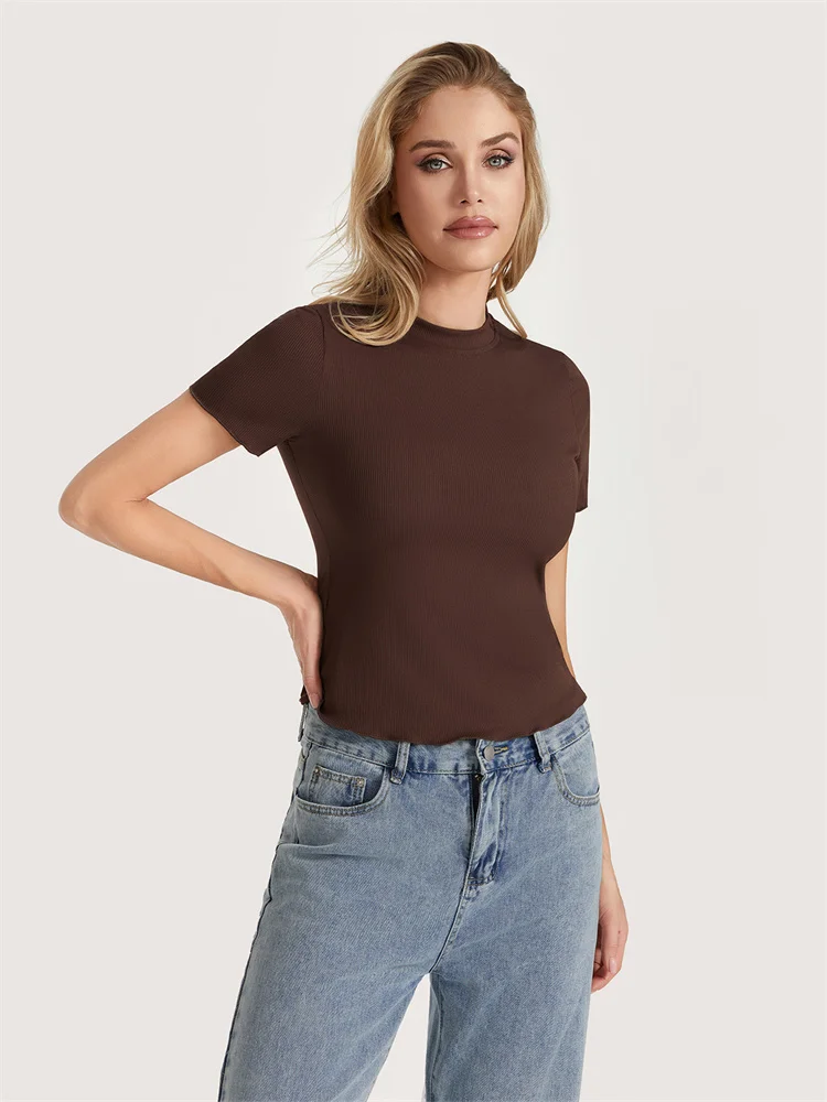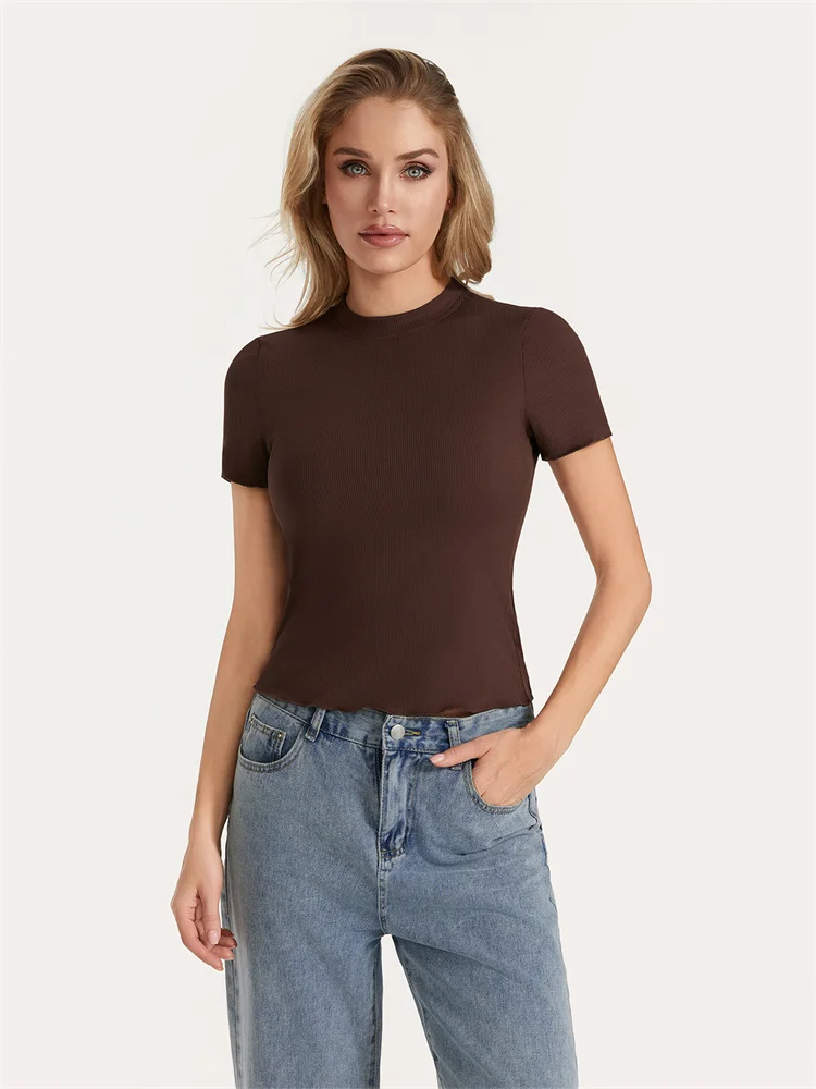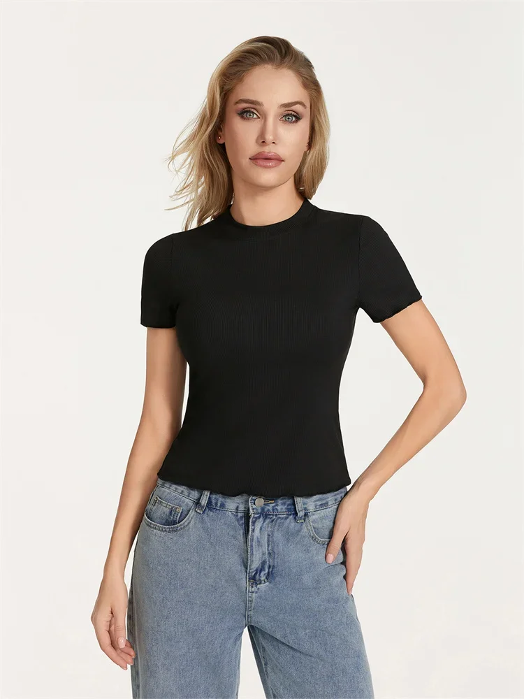 Women’s Summer Solid Color Tops Casual Short Sleeve Crew Neck Lettuce Trim T-Shirts Streetwear