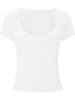 New Women T-shirt Summer Solid Color Short Sleeve Square Neck Slim Fit Crop Tops Casual Elegant Basic Tee Shirts